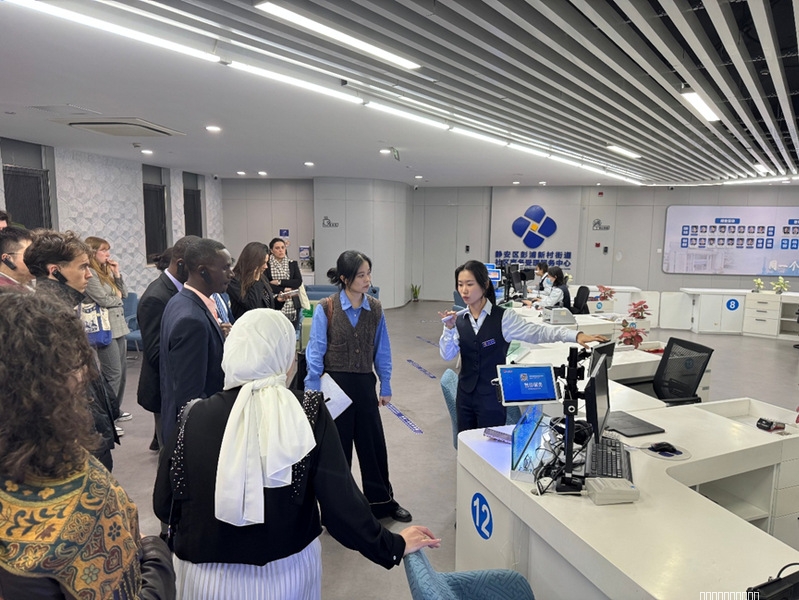 随后,汉学家赴彭浦新村考察,探访上海市基层民生治理新模式。在参观彭浦村街道社区事务受理服务中心后,汉学家们共同表达了对一站式服务的赞赏,表示中国的适老化建设经验值得借鉴和学习。