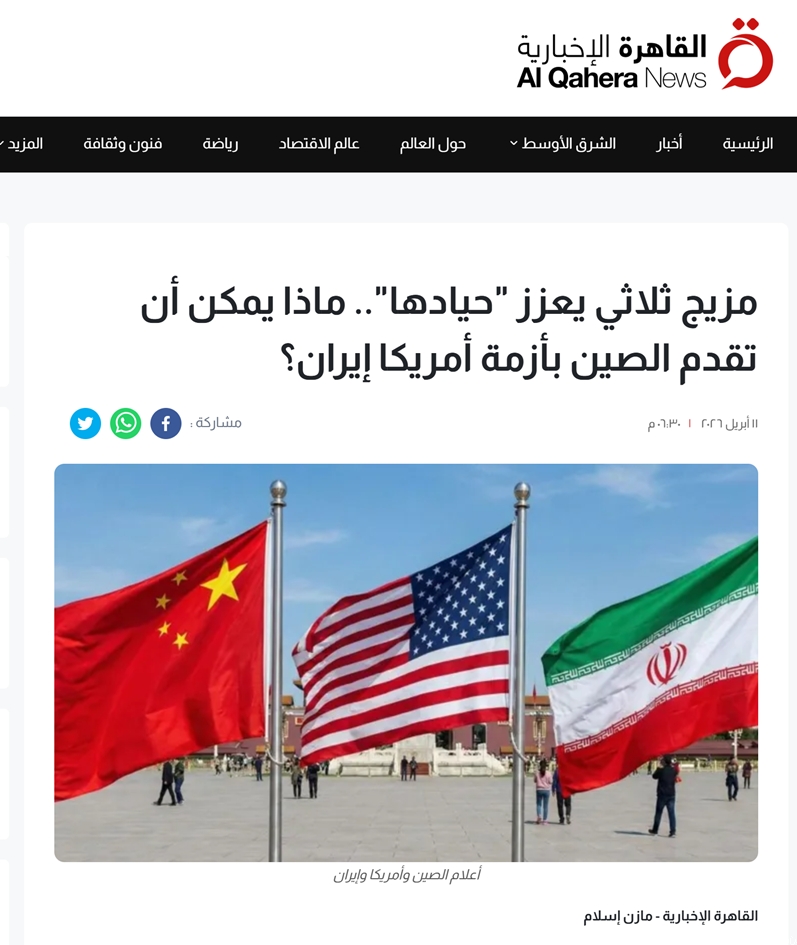 近日,中阿改革发展研究中心秘书长王广大就中国在美以伊冲突中发挥的劝和促谈作用接受《开罗新闻网》采访,摘要如下: